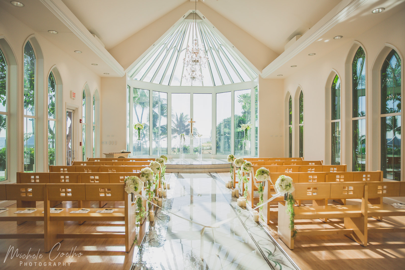 Located on the West Side of Oahu, Hawaii, in the beautiful resort area of Ko’Olina, this beautiful venue is perfect for an intimate wedding. The chapel is elegant and has this tall glass windows that overlooks an ocean view. The oceanfront side garden lawn area is perfect for your reception, beautiful sunsets, dining and dancing under the starts. A true paradise.