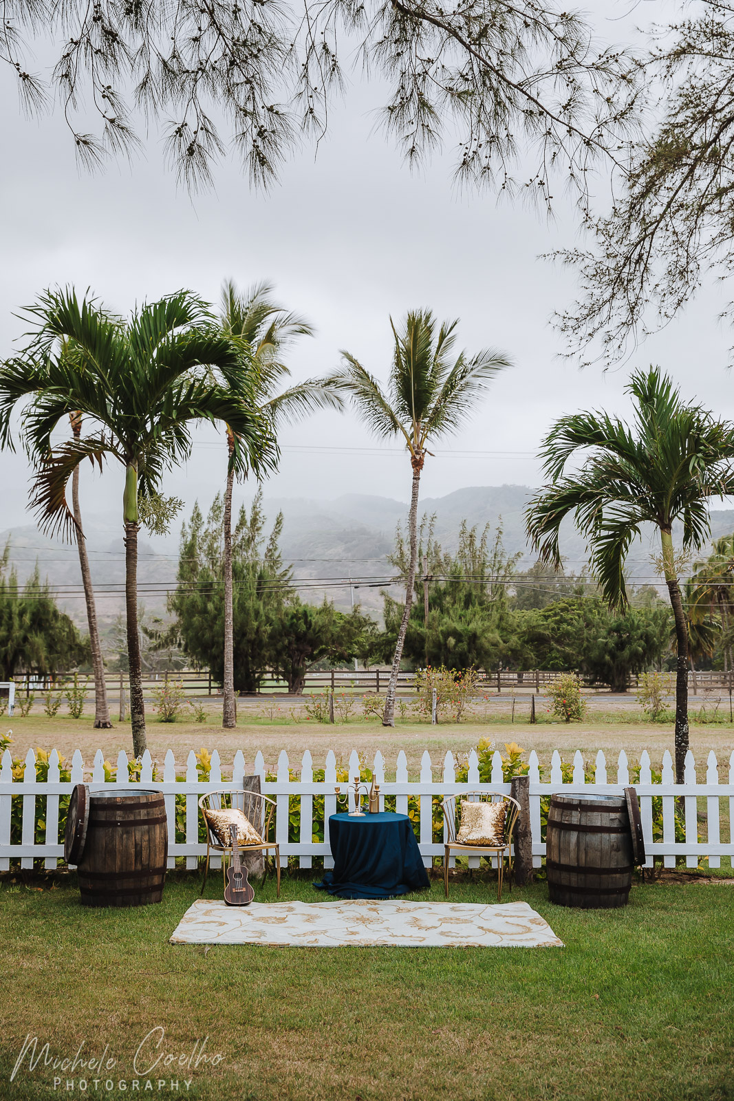 Hawaii Polo Club, is located in Mokuleia on the North side of the Island of Oahu, Hawaii. Private and secluded beach area, beautiful grassy field, palm trees, the Waianae mountain rage, amazing stunning sunsets, a true natural beauty. A country feel, with Hawaii elements. Celebrating your wedding here is a magic experience. The club house has this rustic feeling, embracing some nature-inspired style, and I love the look of the stars when night comes, oh! so dreamy. The Polo Club has horses available that you can book by the hour for photos. If you are a horse lover like me, adding them on your special day sure gives that extra wow on your photos, and why not dress your horse up with a nice flower garland, a flower crown, or a hat, can look stunning and for sure impress your guests.